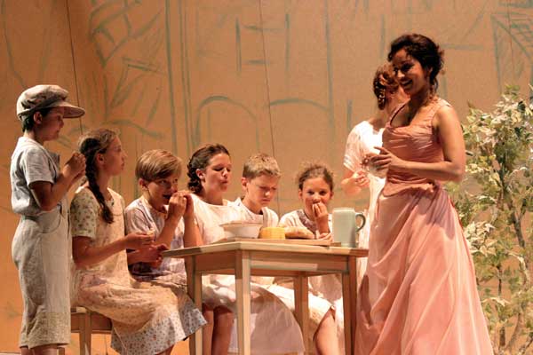 (...) Seit Juli 2003 läuft die von Julia Riegel (Regie) und Caroline Neven Du Mont (Ausstattung) mit glücklicher Hand, Geschmack und Sinn für die feine Form besorgte Inszenierung. (...) Über dem lichten, eine abgeschiedene Ländlichkeit umschließenden Kulissen-Halbrund, der dörfliche Enge ebenso wie seelisches Gleichgewicht der Bewohner visualisiert, (...) wölbt sich von Anfang an ein bedrohlich tintenlastendes Himmelblau. (...)